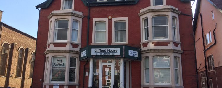 The property at 34-36 Orchard Road, comprises a four-storey, detached office building on a site area of 0.2 acres. Outline planning permission has been secured for 14 new apartments with parking.