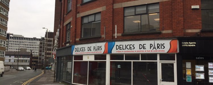 A former French deli & cafe has come to market to let in Preston city centre. The ground floor shop has a large window display to the front of Ormskirk Road, opposite The Holiday Inn and close to The County Court and refurbished market hall.